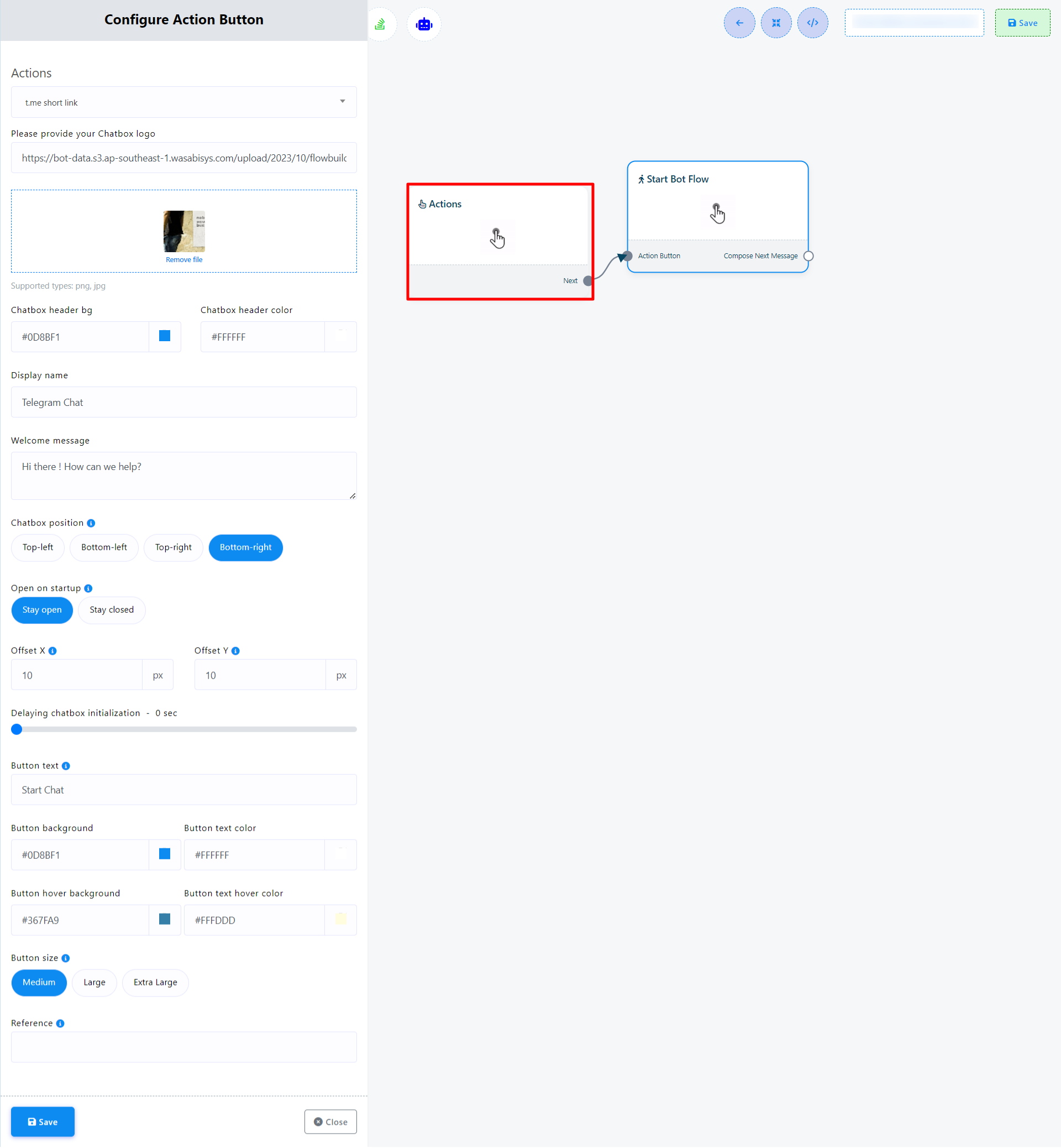 - Click the `Save` button to preserve your bot flow configurations.