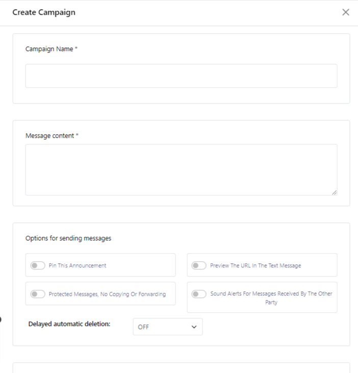 3. Options for sending messages: In this part, you will find several switches for configuring message delivery conditions:
